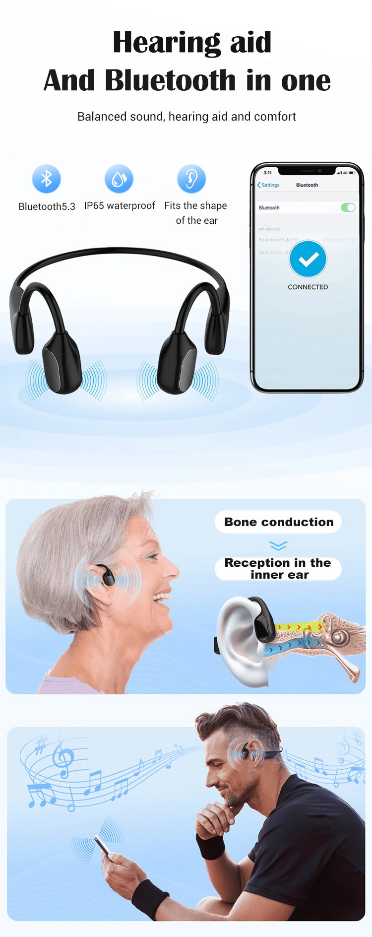 HFH-Bone conduction Bluetooth headphones hearing aids